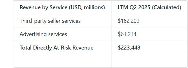 The business lines directly targeted by the FTC—Third-party seller services and Advertising services—are large, high-growth revenue streams. For the last twelve months (LTM) ending Q2 2025, these services generated a combined $223.4 billion. Any remedy impacting these high-margin services would disproportionately affect profitability.