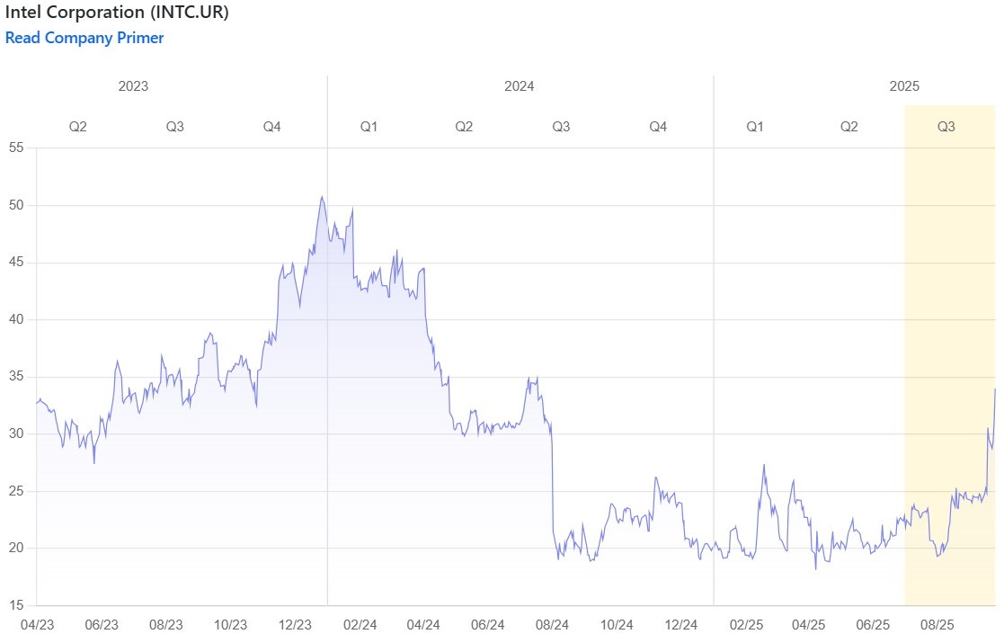 These events occurred against a backdrop of significant capital infusions that have bolstered investor sentiment over the past several months, including a deal for the U.S. government to take a ~10% stake in the company for approximately $10 billion and a separate $2 billion equity investment from SoftBank Group, which has pushed the stock up over 40% since mid-August.