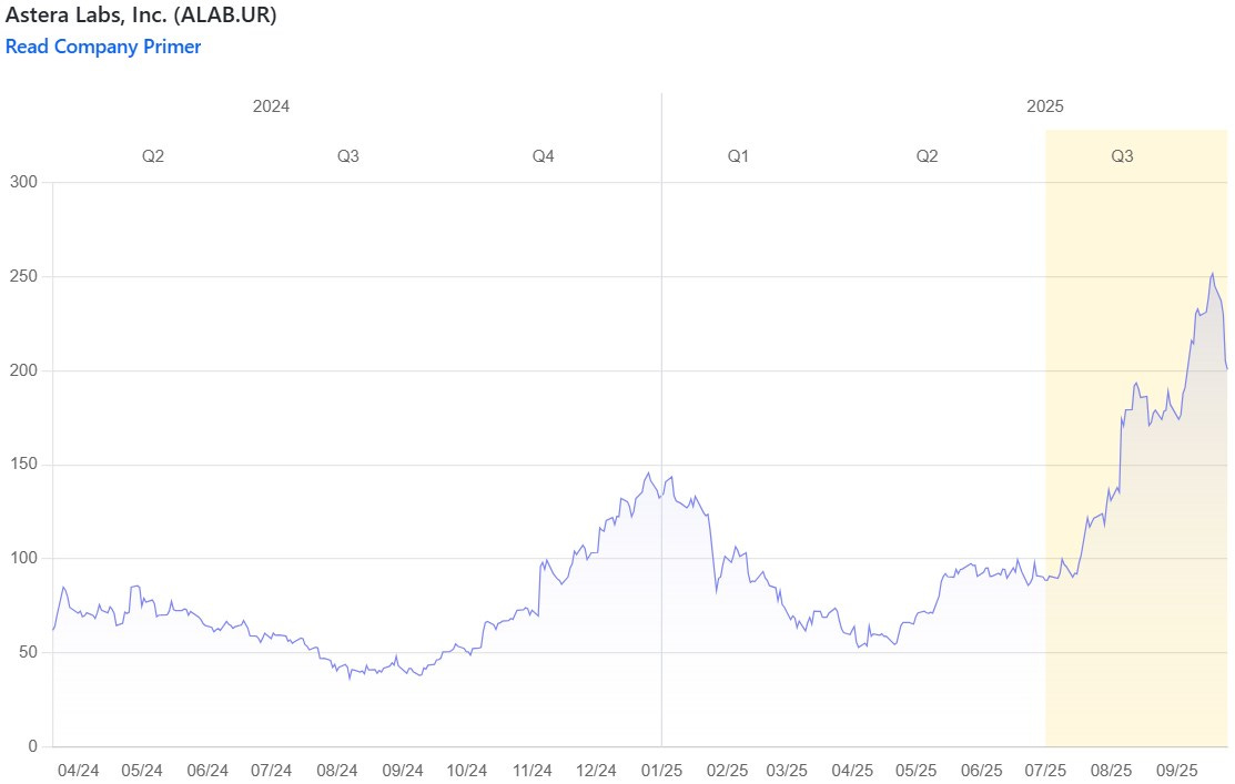 A daily stock decline of approximately 3% each day beginning on September 19 (Astera Labs’ stock tumbles nearly 11%).